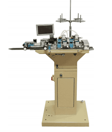 (6) The dual head has automatic lifting device ; it can automatically adjust the sewing width of sock edging ; the curvature can be freely adjusted ; the straight seeming matches the manual seeming .